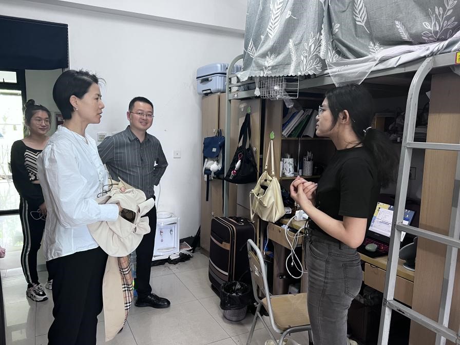 党委书记董春、党委副书记邹先云、辅导员王思涯深入毕业生宿舍开展调研。