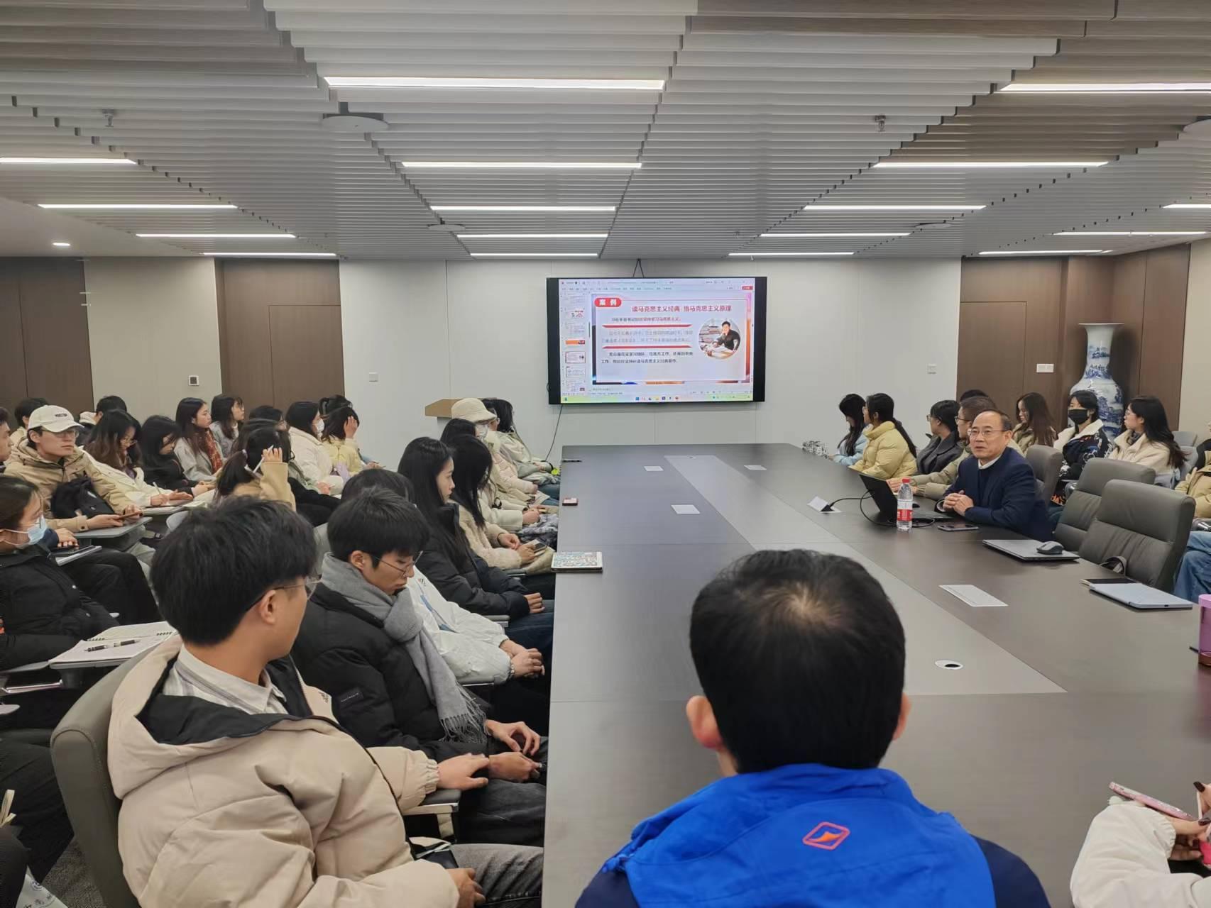 2023年12月26日下午,狂人小说 院长郭建军教授以《深入学习贯彻习近平总书记关于教育的重要论述》为主题为学生讲思政课,狂人小说 本科生第一、二党支部、研究生第三党支部共50余人在诚正楼13楼会议室聆听了课程。
