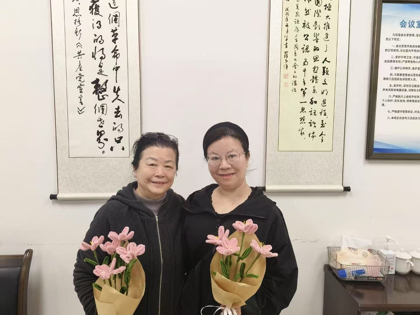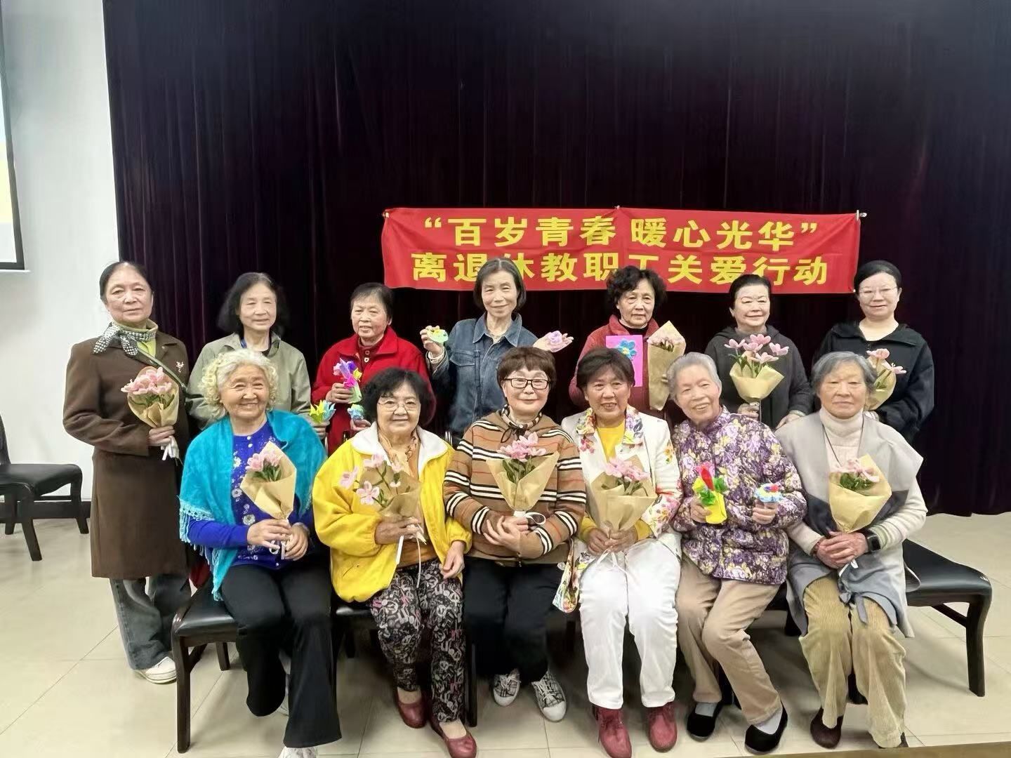 活动临近尾声时,离退休教职工们与志愿者们共同举起精心制作的手工艺品。这些凝聚着两代人智慧与创意的手工作品,在灯光下闪耀着独特的光芒。随着整齐的一声“茄子!”响起,这一刻的美好被永远定格——银发与青春同框,传统与创新交融,为这场充满温情的跨代交流活动描绘出最动人的句点。镜头中,每个人脸上都洋溢着满足的笑容,这不仅是一次活动的圆满结束,更象征着精神传承的美好开端。