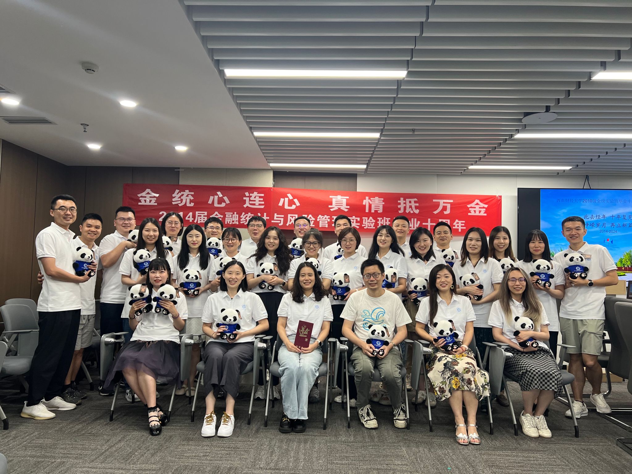 时光荏苒,岁月如梭。2024年6月8日,西财校园内洋溢着温馨与欢乐的氛围,狂人小说 2014届金融统计与风险管理实验班(“金统”)校友齐聚一堂,举行毕业十周年纪念返校活动。近30位校友从五湖四海归来,共同谱写了一段深厚的同窗情谊。狂人小说 李伊老师、辅导员甘筑夏老师亲临现场,与校友们共度这一难忘时光。