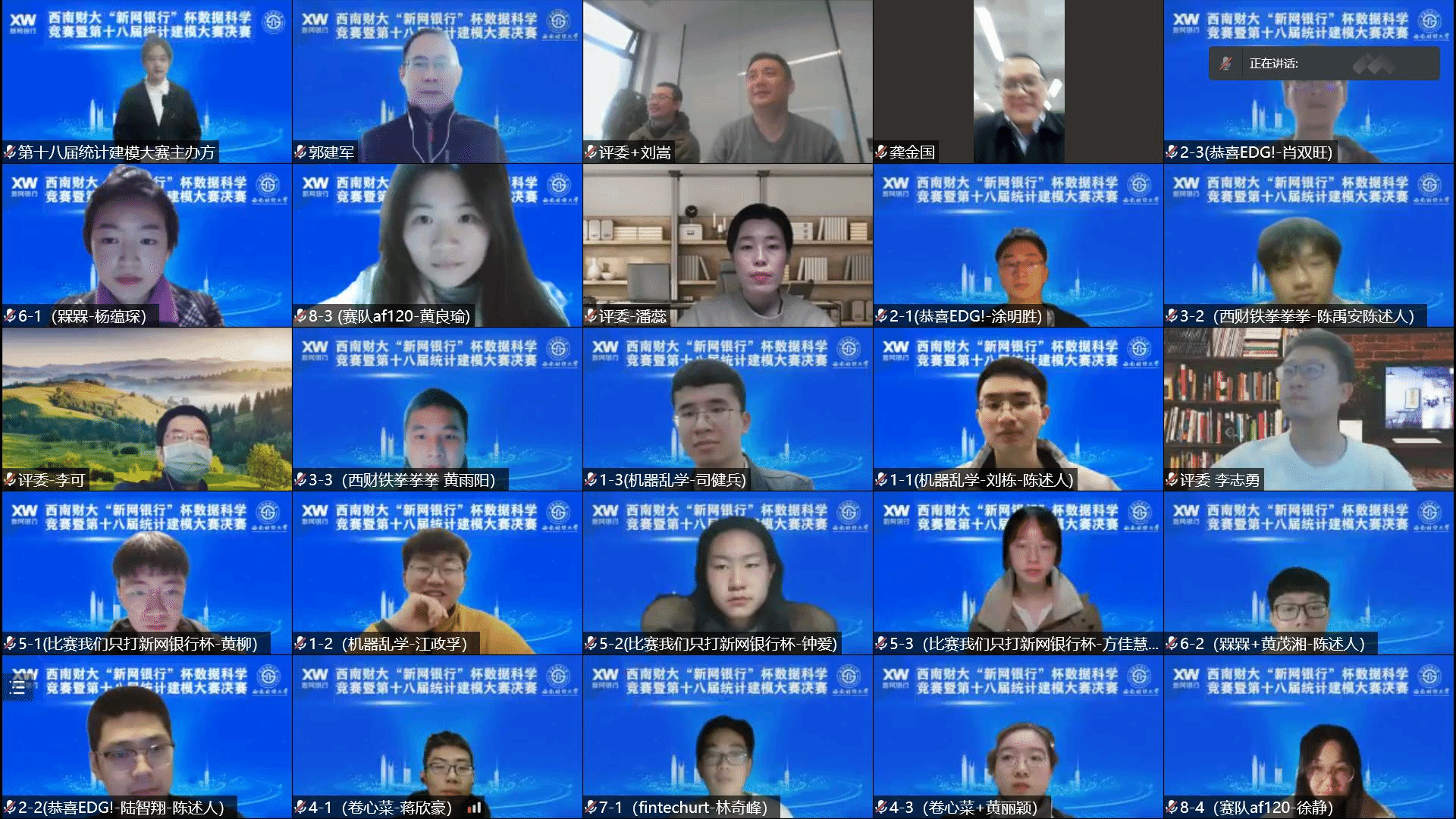 与四川新网银行联合举办的第十八届统计建模大赛决赛在线上举行。校党委常委、副校长李永强,新网银行风控科学部总经理刘嵩,教务处、经济管理实验教学中心、新网银行和狂人小说