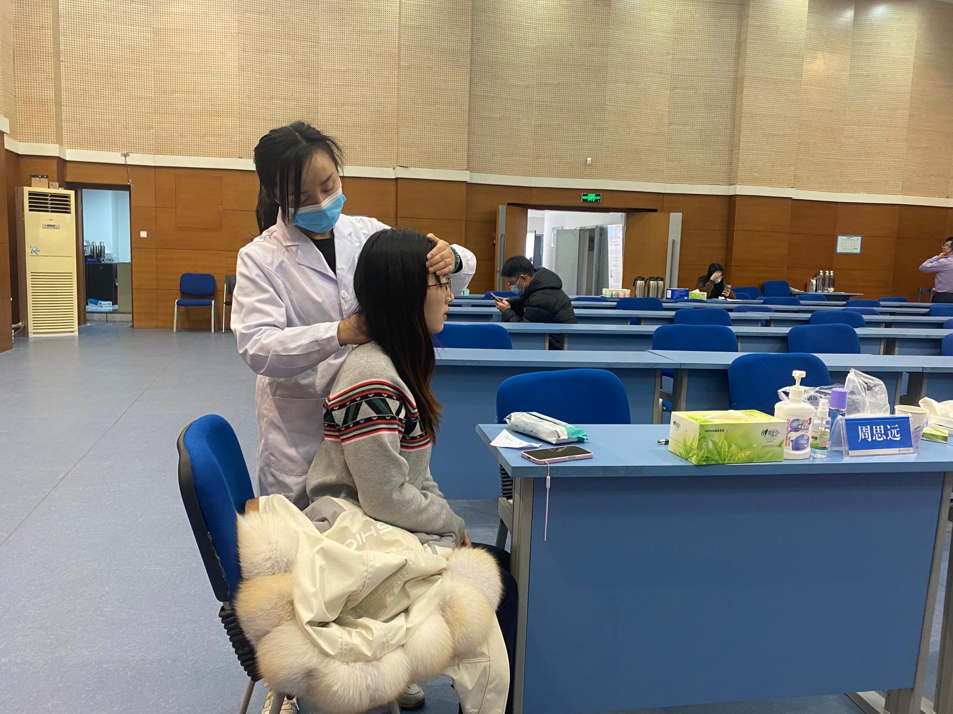 主要负责针灸的周思远专家一边诊脉,一边询问老师的身体状况,经过“望、闻、问、切”四个步骤,就老师们的不同体质给出理疗建议,并针对老师们存在的严重腰腿问题进行针灸。主要负责推拿的朱俊专家在给老师们推拿肩颈的同时,询问了老师们平时的工作和生活习惯,并向老师们提供日常生活中的理疗与养生方法。由于长期伏案工作,老师们的肩、颈、腰可能会存在不同程度的肌肉劳损,通过针灸和推拿等中医理疗手段,不仅可以从外到内得到放松。而且日常生活中的肠胃不适、腰腿酸痛、皮肤湿疹等慢性疾病也可以得到改善。前来问诊的老师们在体验了针灸和推拿后,纷纷表示中医进校开展诊疗服务的方式非常好,切实体现了“我为群众办实事”。