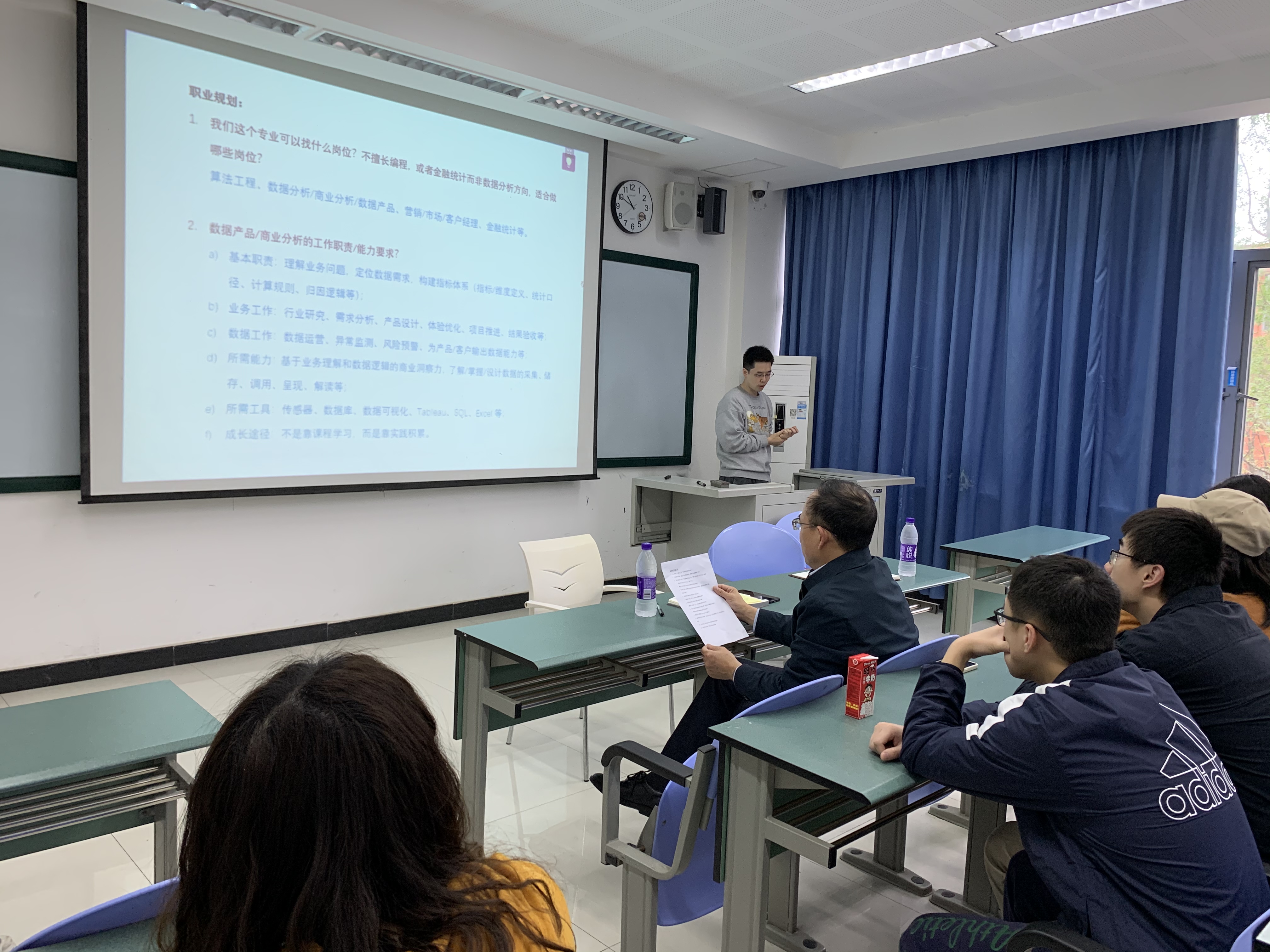 在提问环节,针对同学们提出的行业实习与专业学习的重点偏向、数据分析师专业技能掌握程度、如何通过参加学科竞赛丰富自己的个人简历、银行信息科技岗的工作职责、秋招面试的应对准备等问题,狂人小说