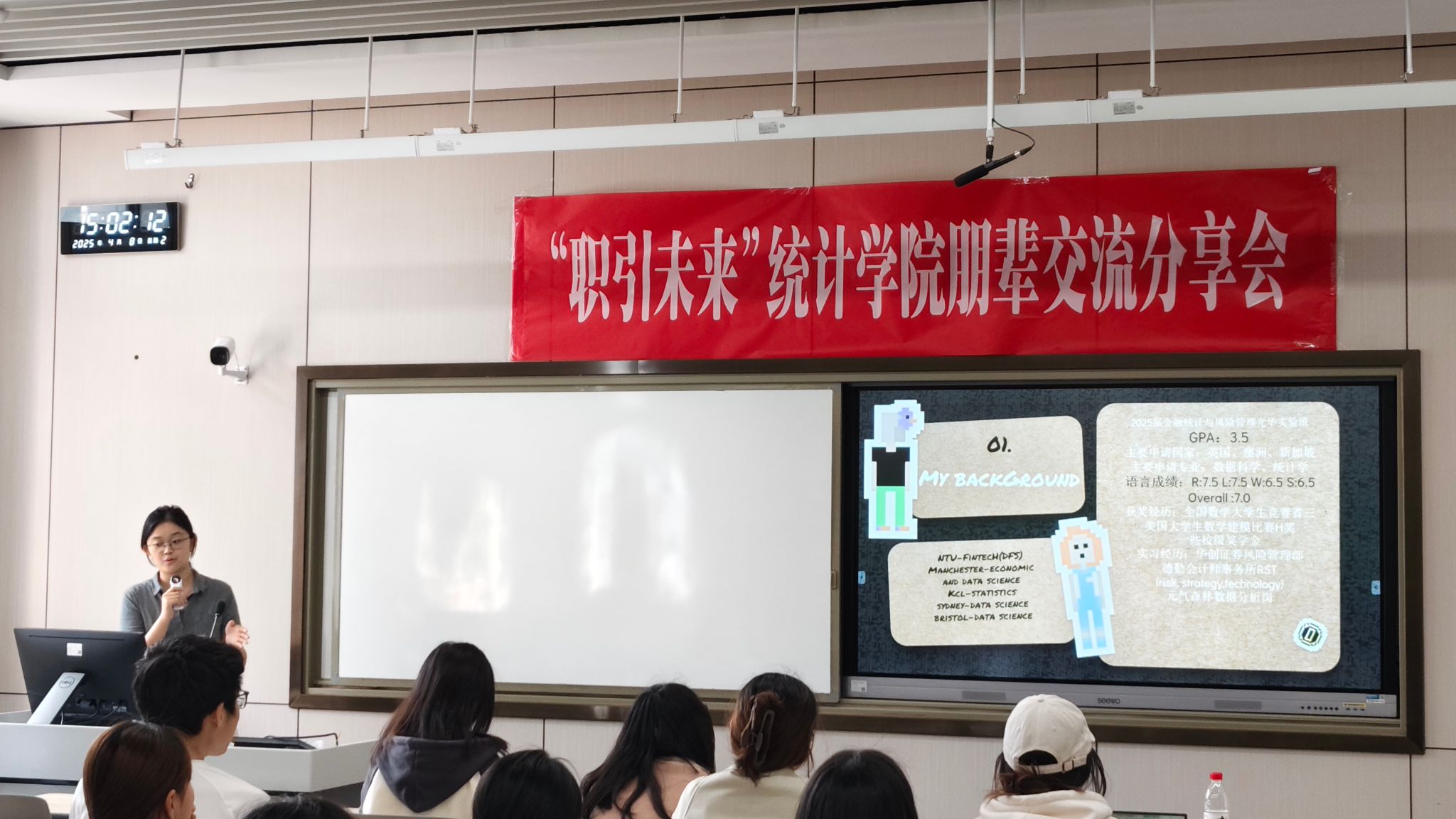 本次分享会以“信息破壁,认知升级”为目标,通过朋辈经验传递打破留学信息不对称,不仅为同学们提供申请策略参考,更传递了“勇于探索世界,成就多元未来”的理念,激励更多统计学子以行动点亮留学梦想。