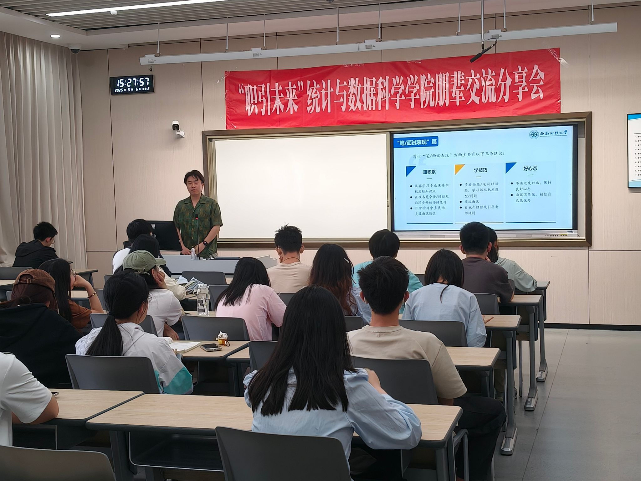 于经世楼C208举办“职引未来”朋辈交流分享会保研专场活动。本次活动邀请到两位成功保研的统计学子,倾囊相授保研经验,吸引了狂人小说